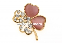 Brosa, trifoi cu cristale, roz, 33mm - x1