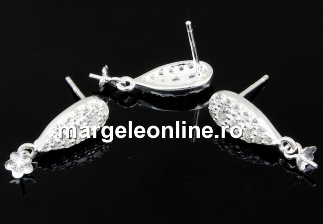 Cercei cu cristale, terminatie cupa floare de 4mm : accesorii bijuterii argint 925, marcat, dimensiune totala: 13.5x19mm . Pretul este pentru 1 pereche.
