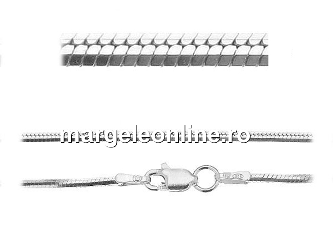 Lant din argint 925, marcat, lungime: 45mm, grosime: 1.5mm, prevazut cu incuietoare, hexagonal si usor aplatizat. Pretul este pentru 1 bucata.