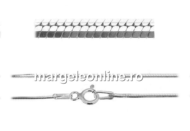 Lant din argint 925, marcat, lungime: 45mm, grosime: 1mm, prevazut cu incuietoare, hexagonal si usor aplatizat. Pretul este pentru 1 bucata.