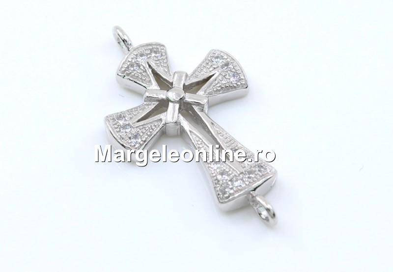 Link cruce cu cristale, argint 925 placat cu rodiu, dimensiune: 23x12mm. Pretul se refera la 1 bucata.