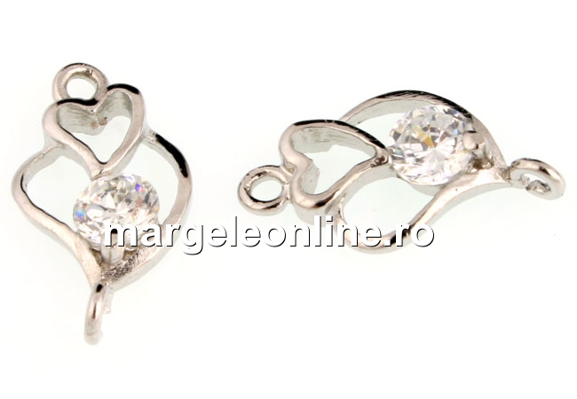Link inimi: accesorii bijuterii argint 925 placat cu rodiu, dimensiune 15x8.5mm, prevazut cu un cristal Swarovski clear de 4mm. Pretul se refera la 1 bucata.