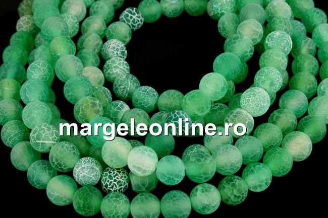Margele agata verde cu aspect frosted, forma: rotund, marime: 6mm. Pretul se refera la 1 sirag de 38.5cm.