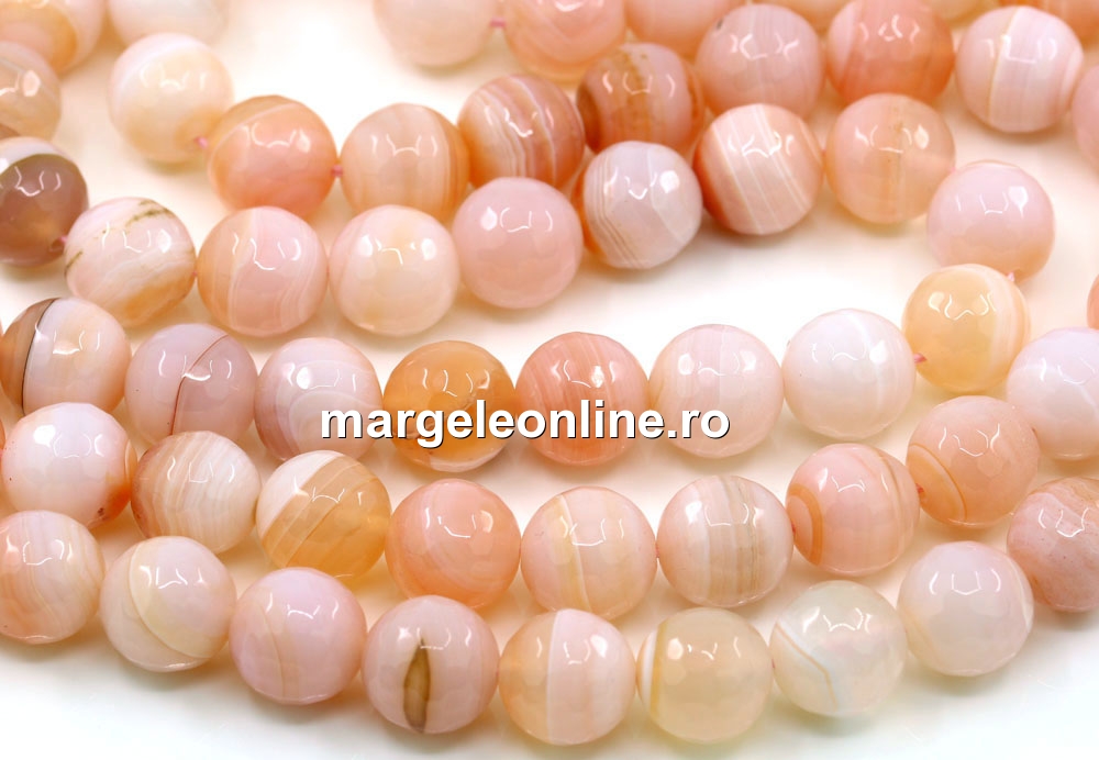 Margele agate dantelate, forma: rotund fatetat, marime: 10mm, lungime sirag: 38-39cm. Pretul este pentru un sirag fara sistem de inchidere.