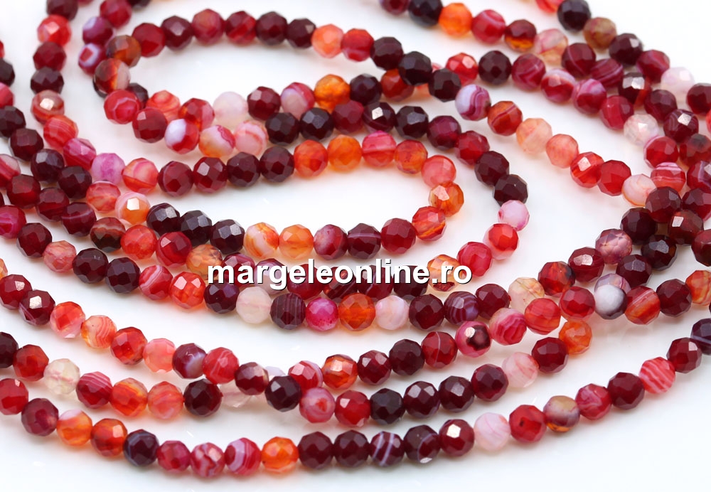 Margele Agate lace, rotund fatetat, rosu, 4mm