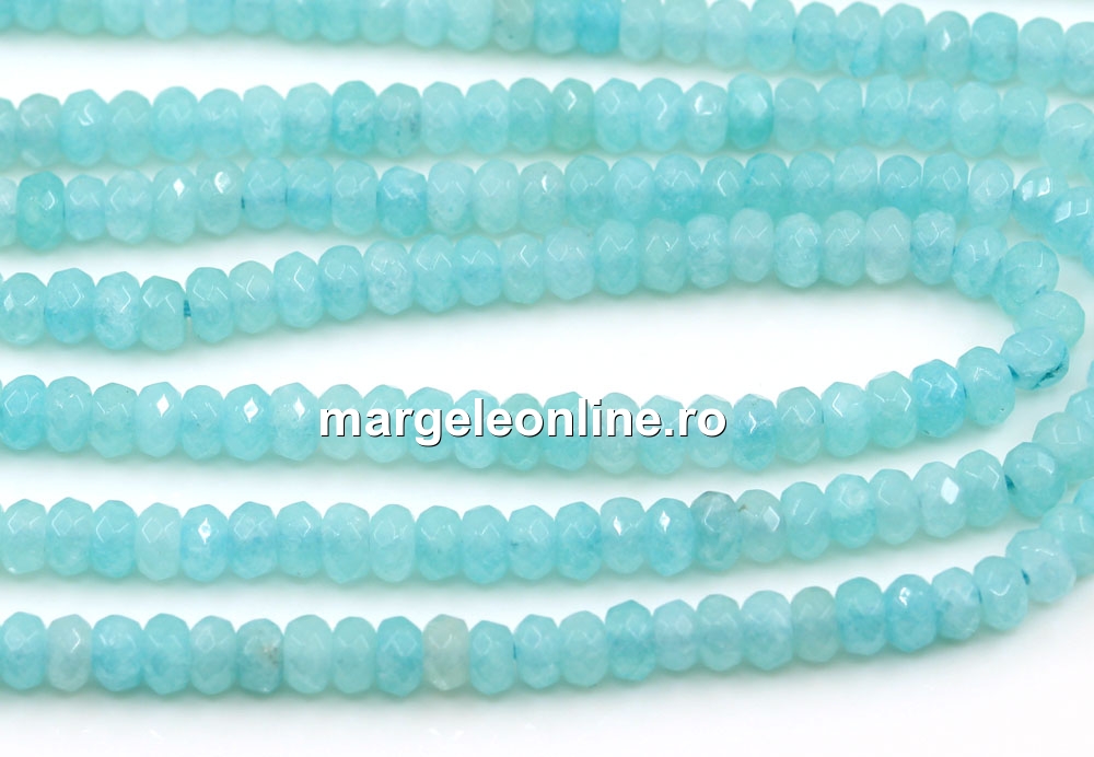 Margele Agate, rondele fatetate, acvamarin, 4.5mm