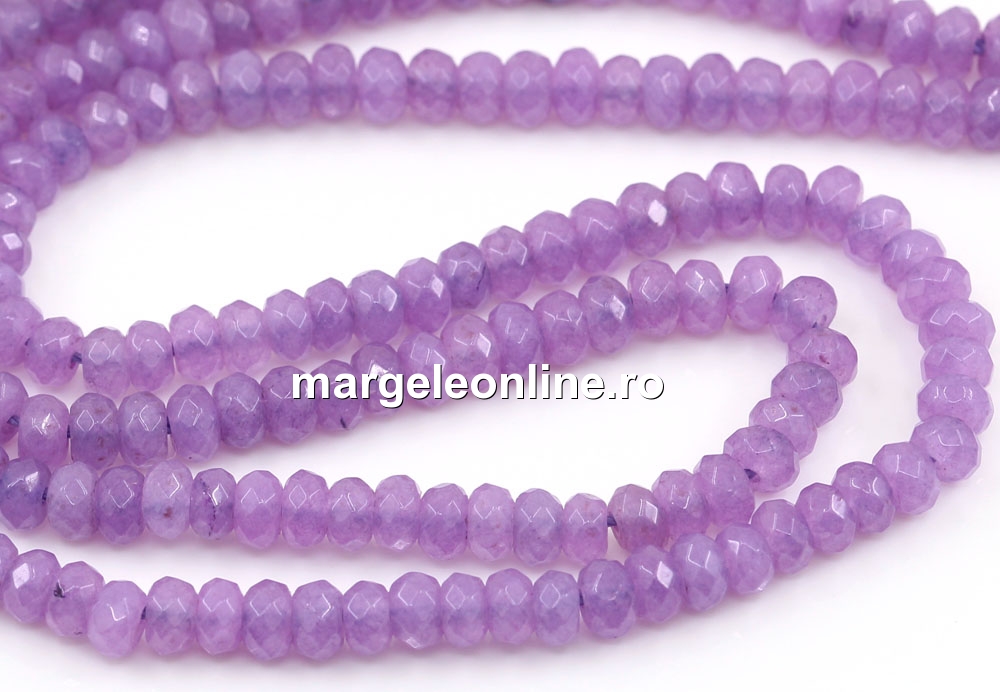 Margele Agate, rondele fatetate, mov-lila, 4.5mm