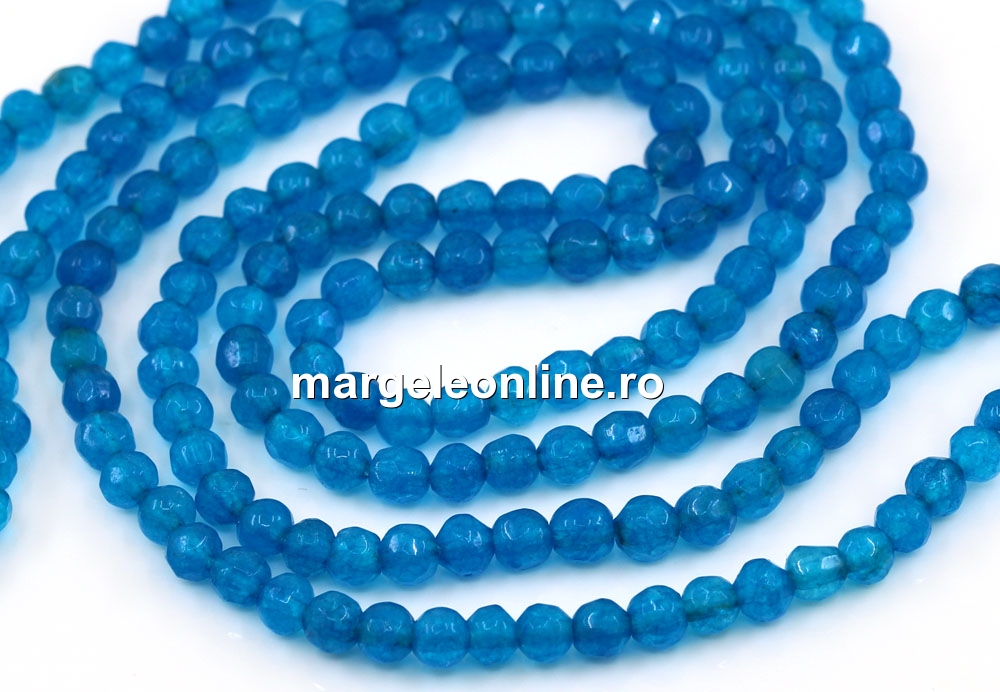 Margele Agate, rotund fatetat, albastru capri, 4mm