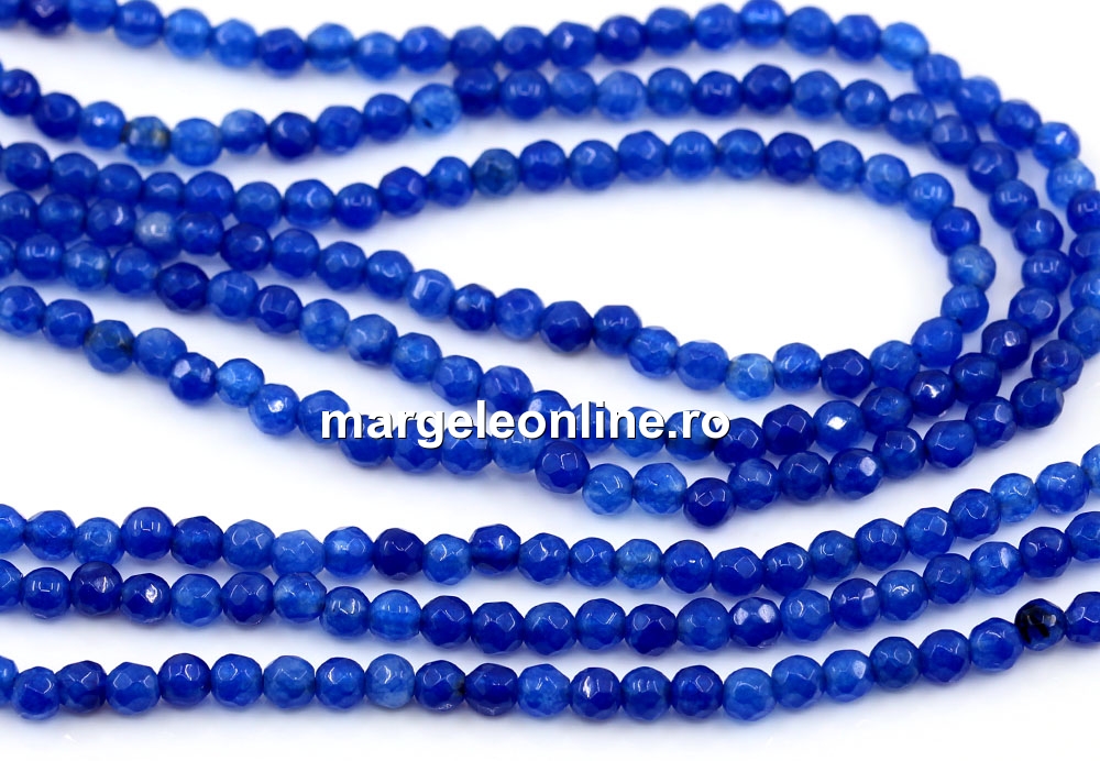 Margele Agate, rotund fatetat, albastru intens, 3.3mm