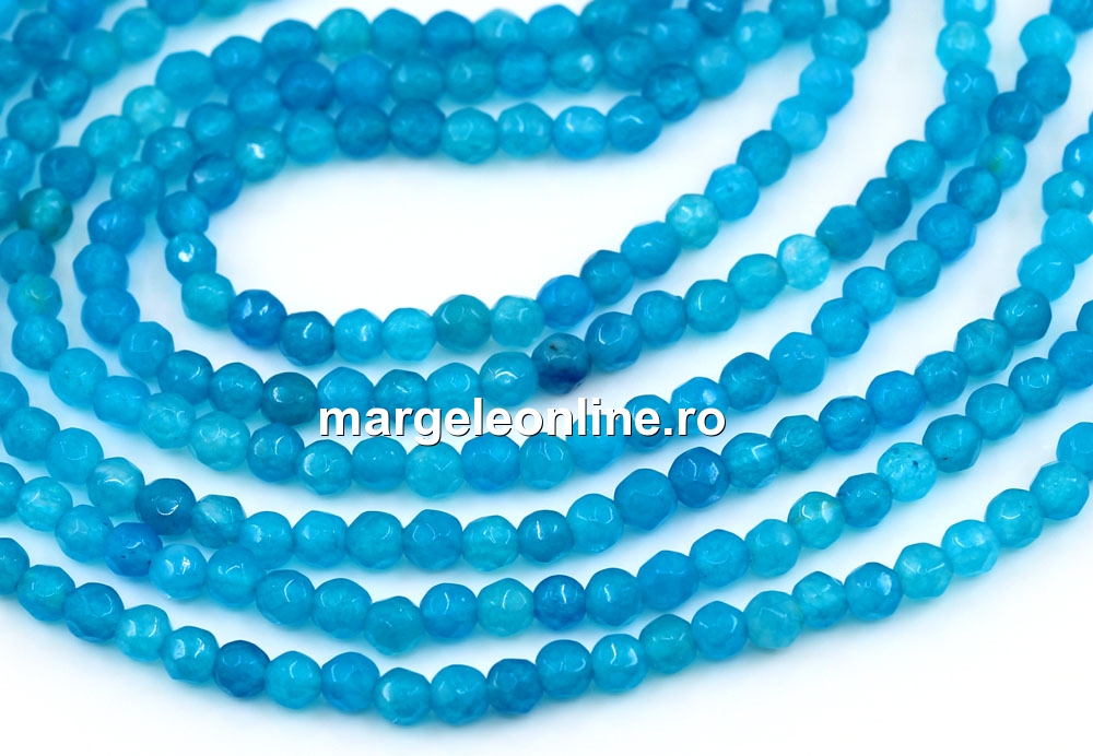 Margele Agate, rotund fatetat, albastru marin, 3.3mm
