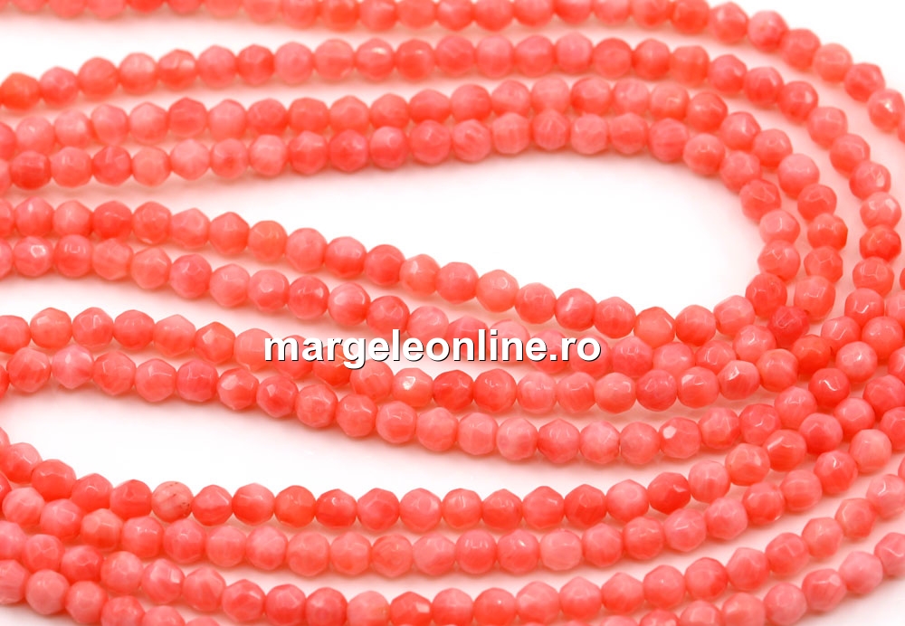 Margele Agate, rotund fatetat, corai, 3.3mm