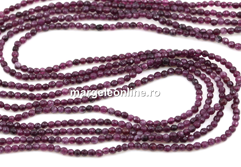 Margele Agate, rotund fatetat, mov-grena, 2mm
