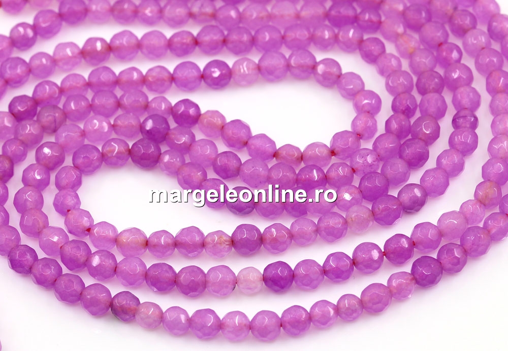 Margele Agate, rotund fatetat, mov lila, 4mm