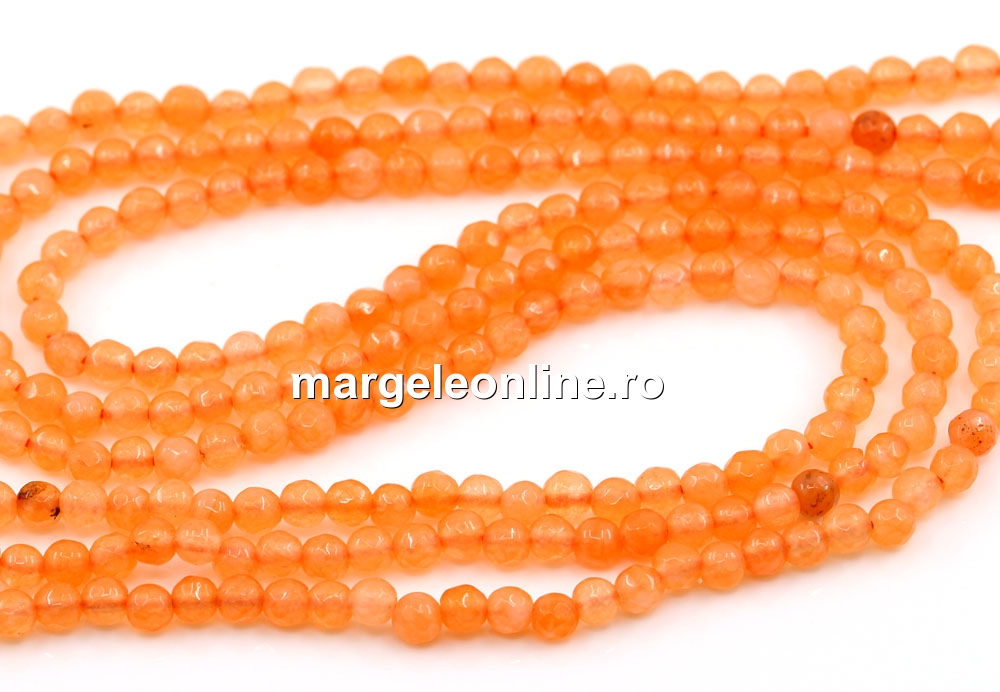 Margele Agate, rotund fatetat, portocaliu, 3.3mm