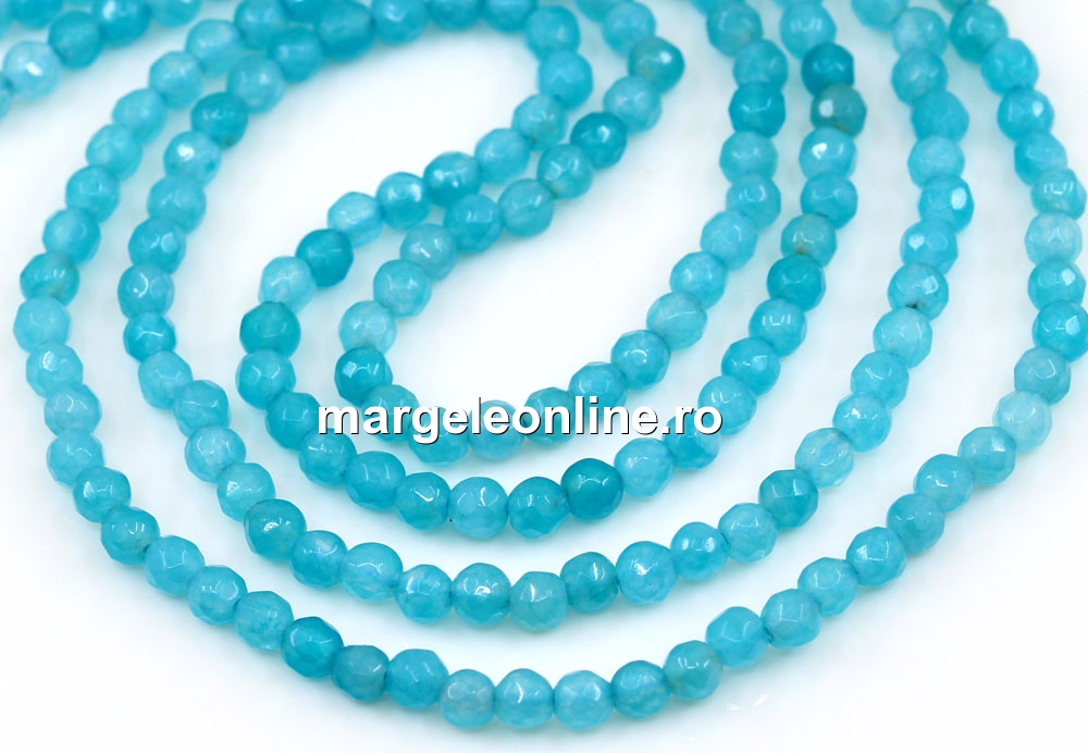 Margele Agate, rotund fatetat, turcoaz, 3.3mm