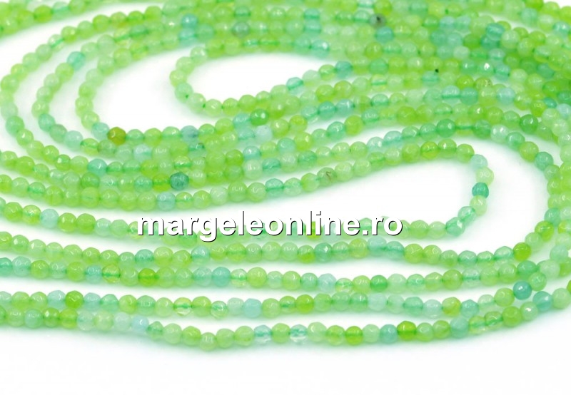 Margele Agate, rotund fatetat, verde lime, 2.3mm