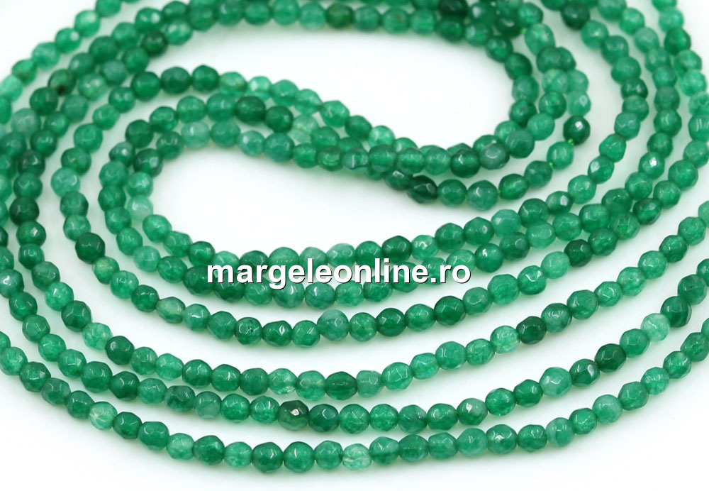 Margele Agate, rotund fatetat, verde smarald, 3mm