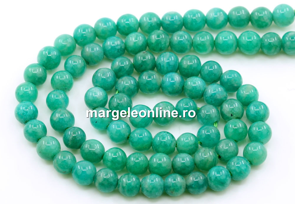 Margele Amazonit brazilian, forma: rotund, marime: 4.5mm, lungime sirag: 39cm. Pretul este pentru un sirag fara sistem de inchidere.