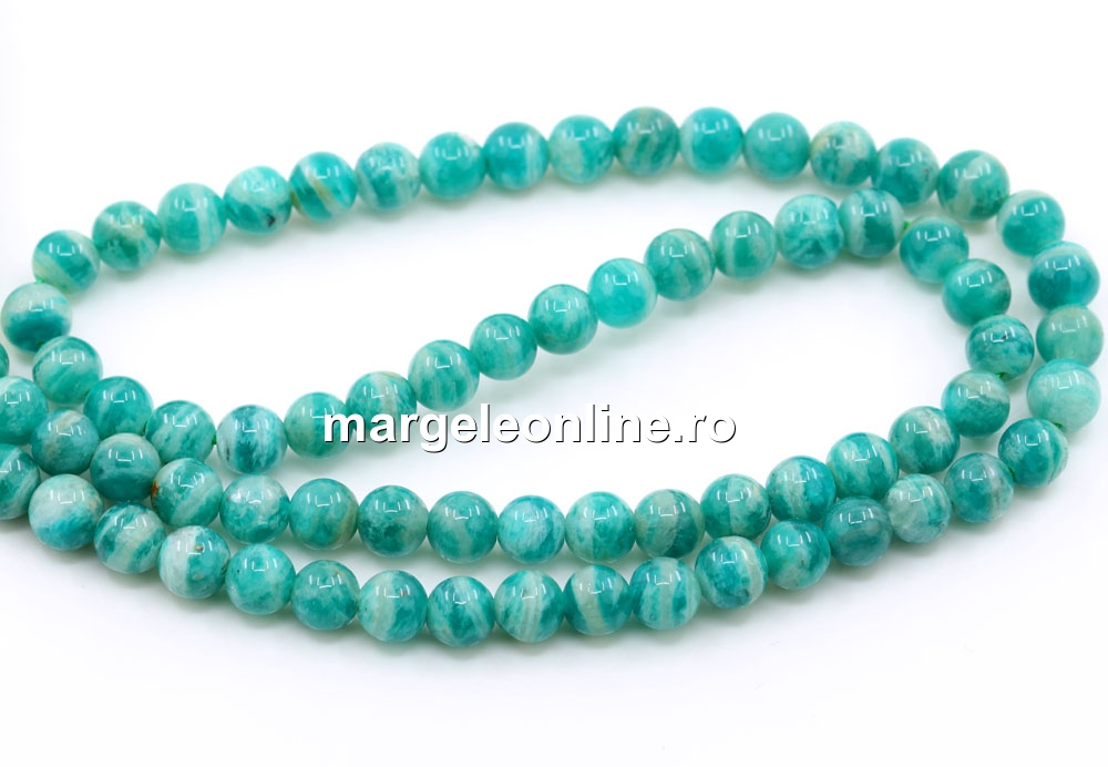 Margele Amazonit brazilian, forma: rotund, marime: 5mm, lungime sirag: 40cm. Pretul este pentru un sirag fara sistem de inchidere.