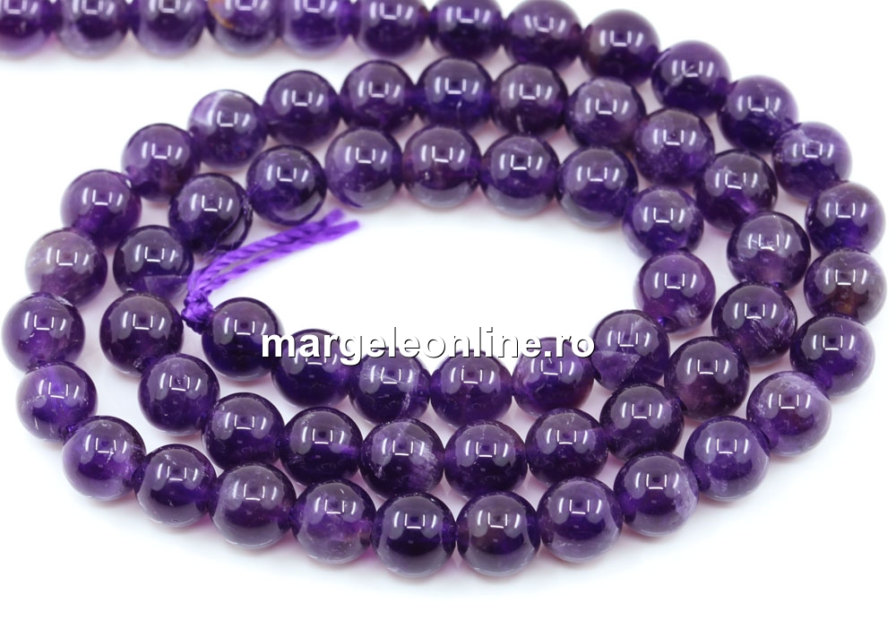 Margele ametist intens, forma: rotund, marime: 6.5mm, lungime sirag: 40cm. Pretul este pentru un sirag fara sistem de inchidere.