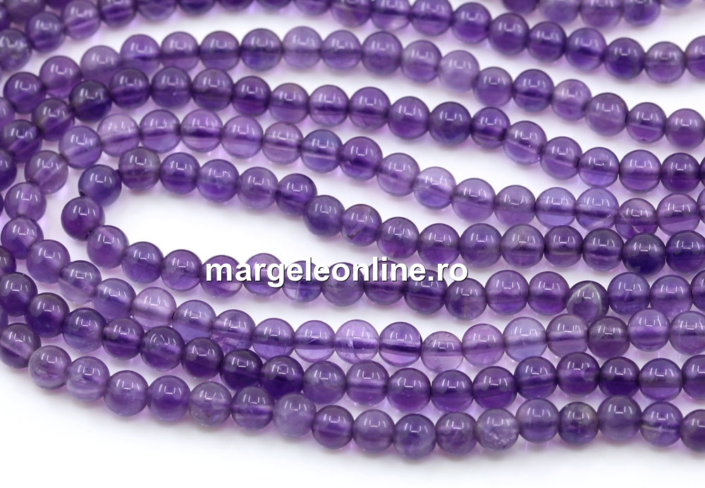 Margele Ametist, forma: rotund, marime: 3.6mm, lungime sirag: 39cm. Pretul este pentru un sirag fara sistem de inchidere.