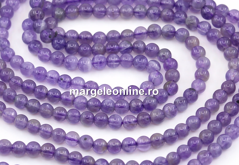 Margele ametist, forma: rotund, marime: 3.9mm, lungime sirag: 39cm. Pretul este pentru un sirag fara sistem de inchidere.