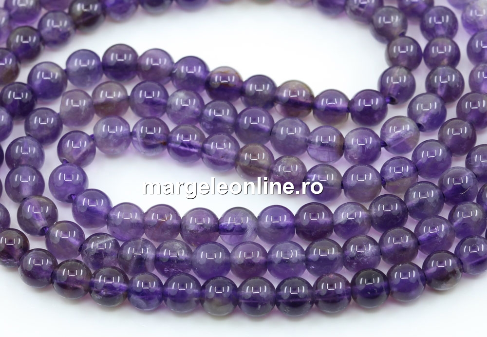 Margele ametist, forma: rotund, marime: 5.5mm, lungime sirag: 40cm. Pretul este pentru un sirag fara sistem de inchidere.