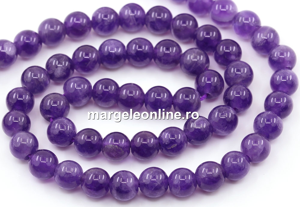 Margele ametist, forma: rotund, marime: 6.5mm, lungime sirag: 38cm. Pretul este pentru un sirag fara sistem de inchidere.
