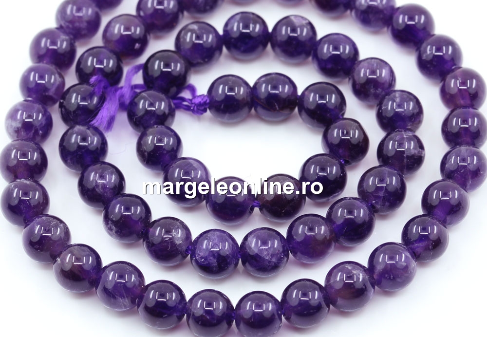 Margele ametist, forma: rotund, marime: 6.5mm, lungime sirag: 40cm. Pretul este pentru un sirag fara sistem de inchidere.