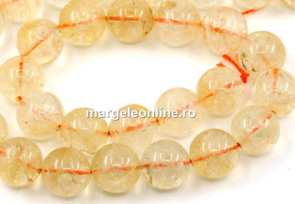 Margele citrin, forma: rotund, marime: 13mm, lungime sirag: 39cm. Pretul este pentru un sirag fara sistem de inchidere.