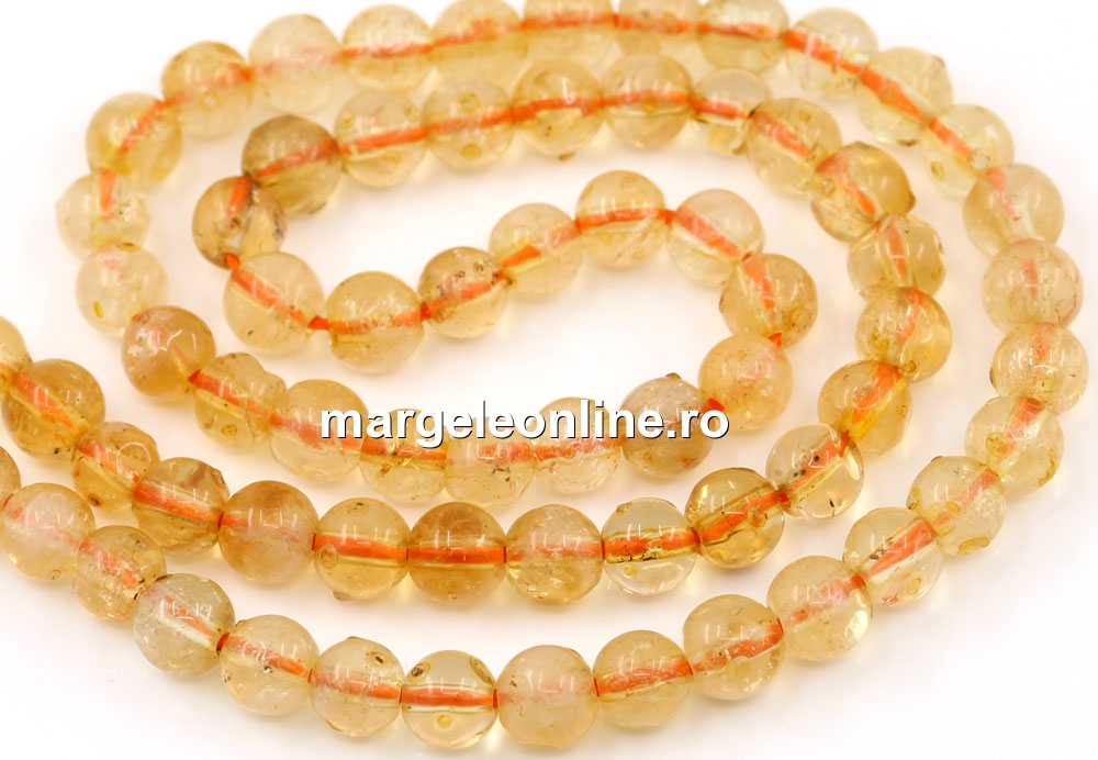 Margele citrin, forma: rotund, marime: 5.5mm, lungime sirag: 41cm. Pretul este pentru un sirag fara sistem de inchidere.