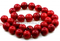 Margele coral, culoare: rosu intens, forma: rotund, marime: 14mm, margelele prezinta incluziuni si cavitati specifice coralului natural . Aceste "imperfectiuni" sunt apreciate de clientii care doresc o noata de originalitate pentru bijuterii. Pretul se refera la un sirag de cca 40cm.