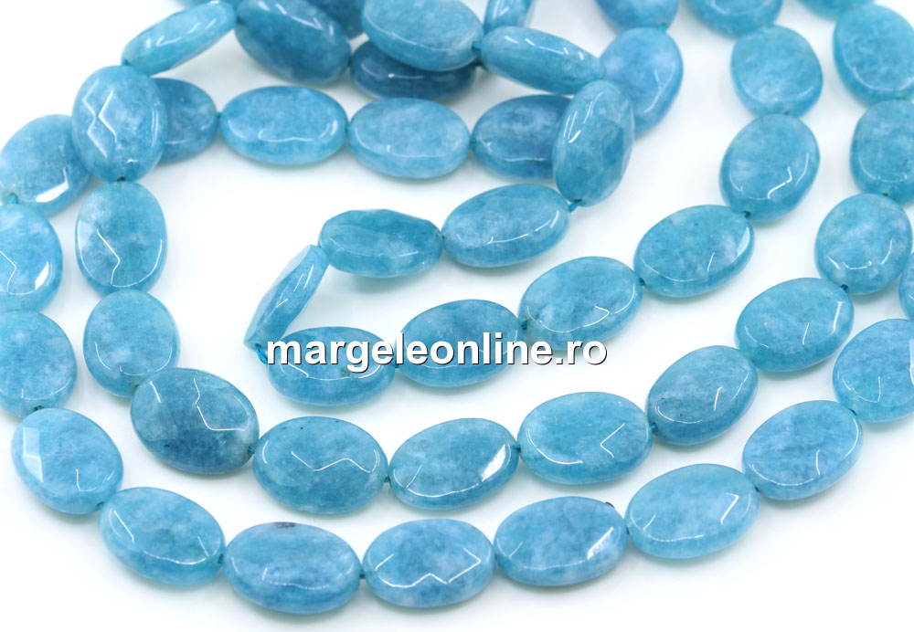Margele cuart albastru angelit, forma: oval fatetat, marime: 14x10mm, lungime sirag: 39.5cm. Pretul este pentru un sirag fara sistem de inchidere.
