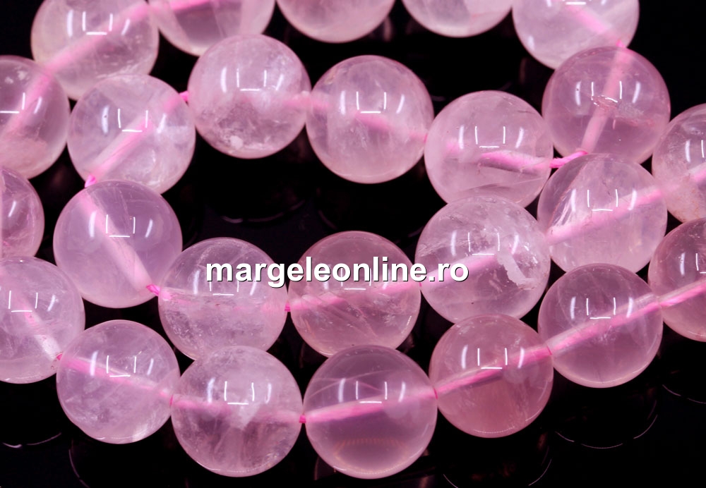 Margele cuart roz, forma: rotund, marime: 14mm, lungime sirag: 39-40cm. Pretul este pentru un sirag fara sistem de inchidere.