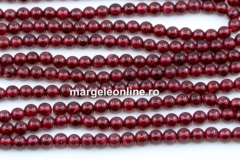 Margele granat, forma: rotund, marime: 3.5mm, lungime sirag: 39.5cm. Pretul este pentru un sirag fara sistem de inchidere.