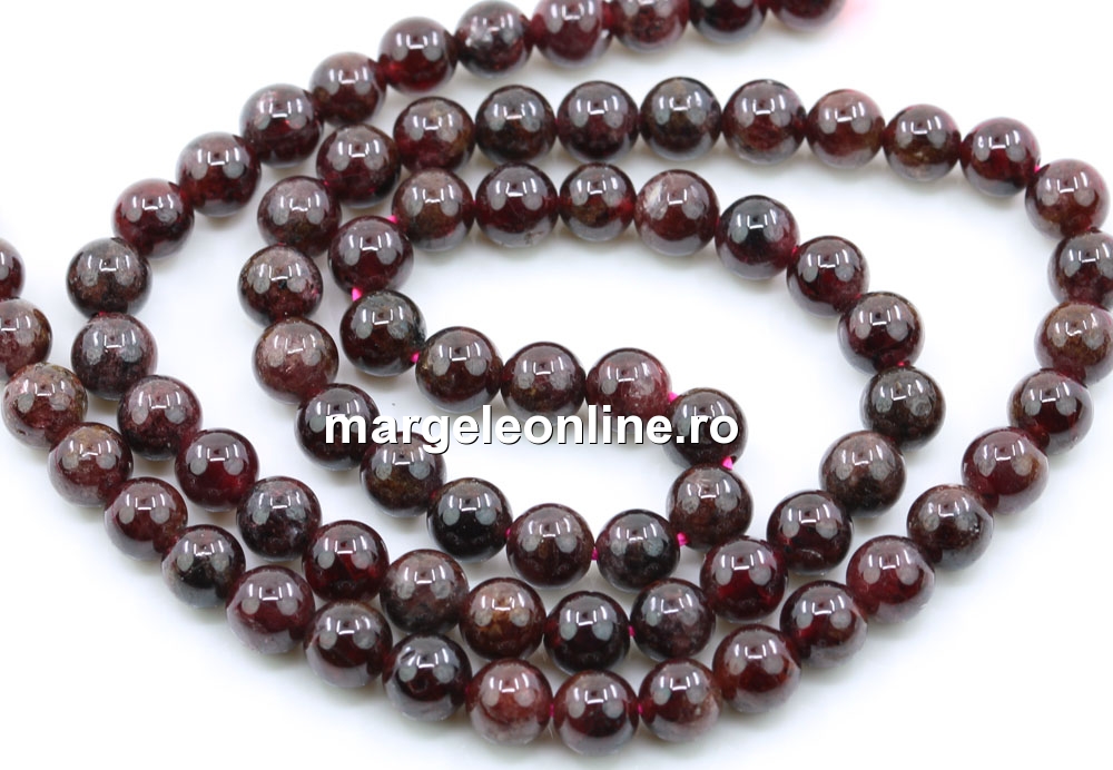 Margele Granat, forma: rotund, marime: 5.5mm, lungime sirag: 40cm. Pretul este pentru un sirag fara sistem de inchidere.