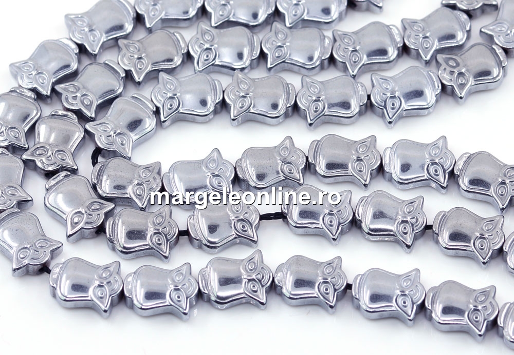 Margele hematit electroplacat, forma: bufnita, marime: 10x8mm, lungime sirag: 41cm. Pretul este pentru un sirag fara sistem de inchidere.
