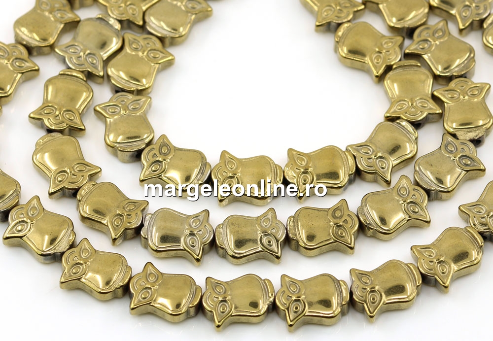 Margele Hematit, bufnita, auriu, 10mm
