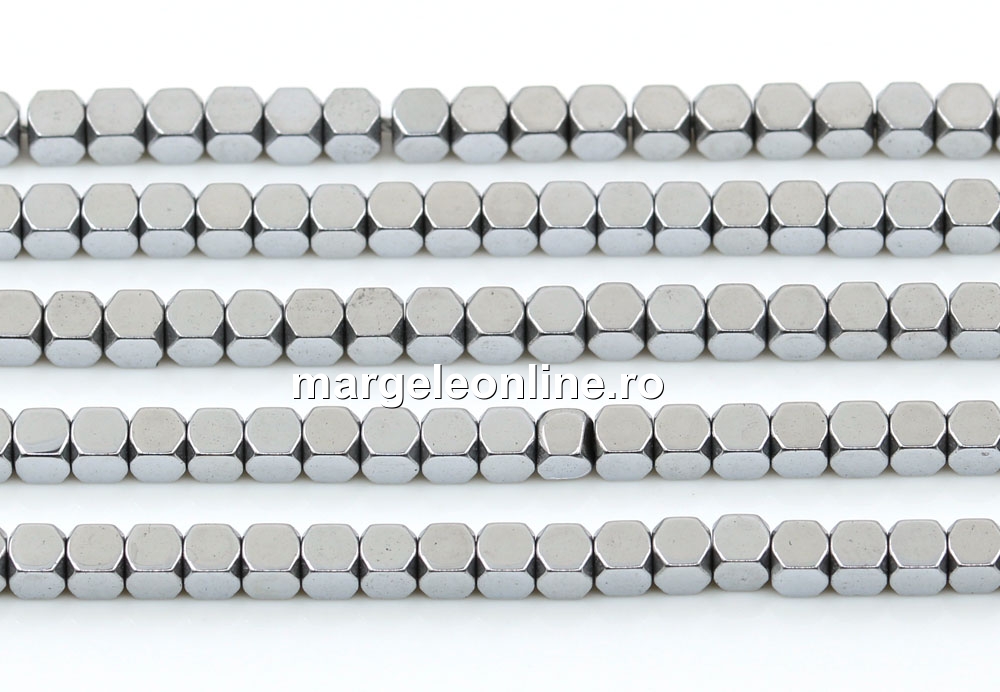 Margele Hematit, cub hexagon, argintiu, 3mm