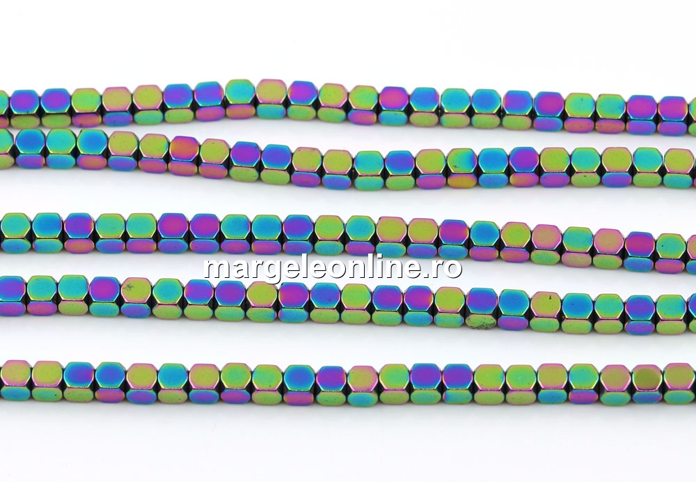 Margele Hematit, cub hexagon, rainbow, 3mm