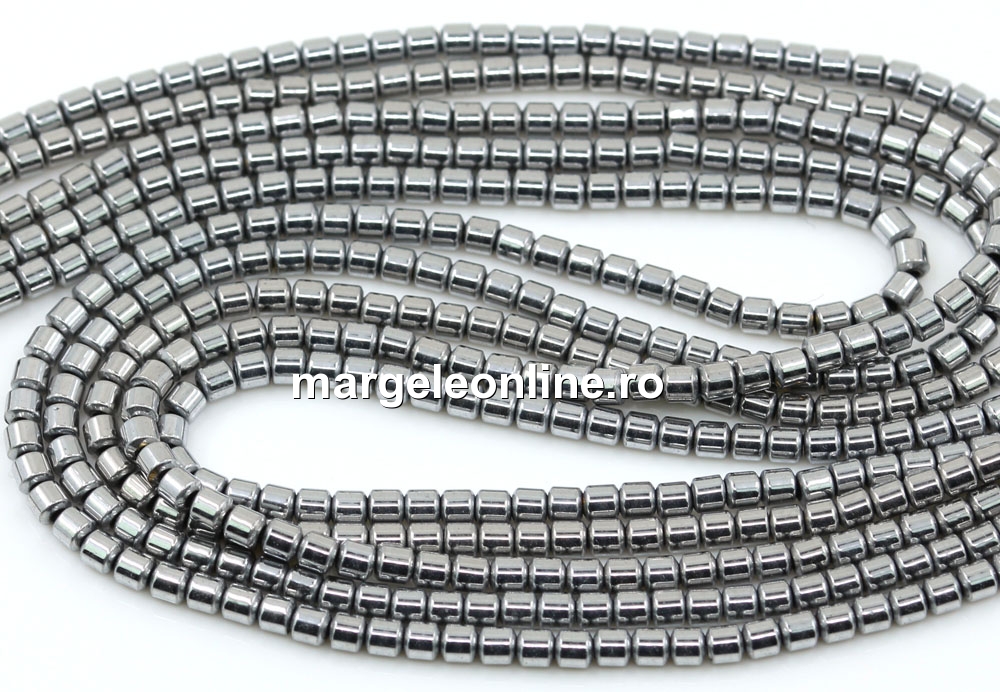 Margele Hematit electroplacat, tub, argintiu, 2.3x2.2mm