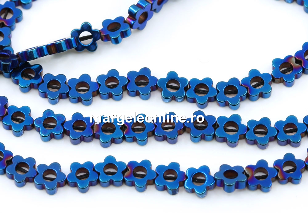 Margele Hematit, floare, cobalt, 6mm