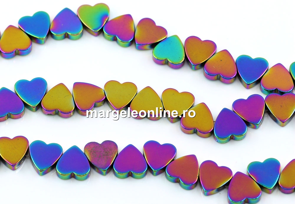 Margele Hematit, inima, rainbow, 8mm