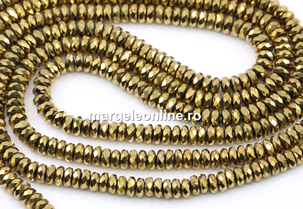 Margele Hematit, rondela fatetata, auriu, 4mm