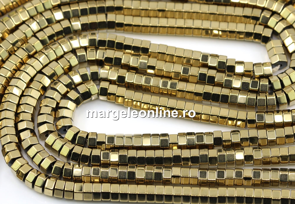 Margele Hematit, rondela hexagon, auriu, 4mm