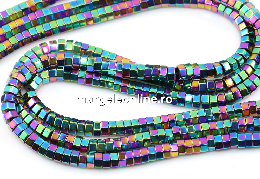 Margele Hematit, rondela hexagon, rainbow, 4mm