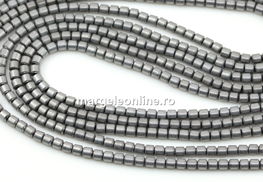 Margele Hematit, tub, argintiu mat, 2.3x2.2mm