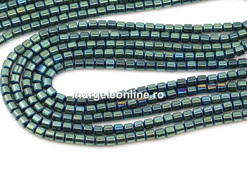 Margele Hematit, tub, verde, 2.3x2.2mm