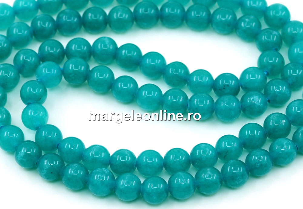 Margele Jad, rotund, verde marin, 6.5mm