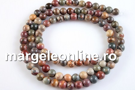 Margele jasp red creek, forma: rotund, marime: 4.5mm, lungime sirag: 40cm. Pretul este pentru un sirag cu cu 94-96 margele.